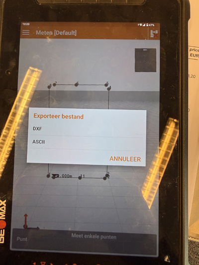 De meting wordt ge-exporteerd naar CAD of  Excel